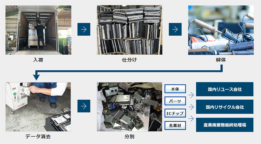 廃棄処理・再資源化を国際環境基準に適応した国内提携工場で行い、